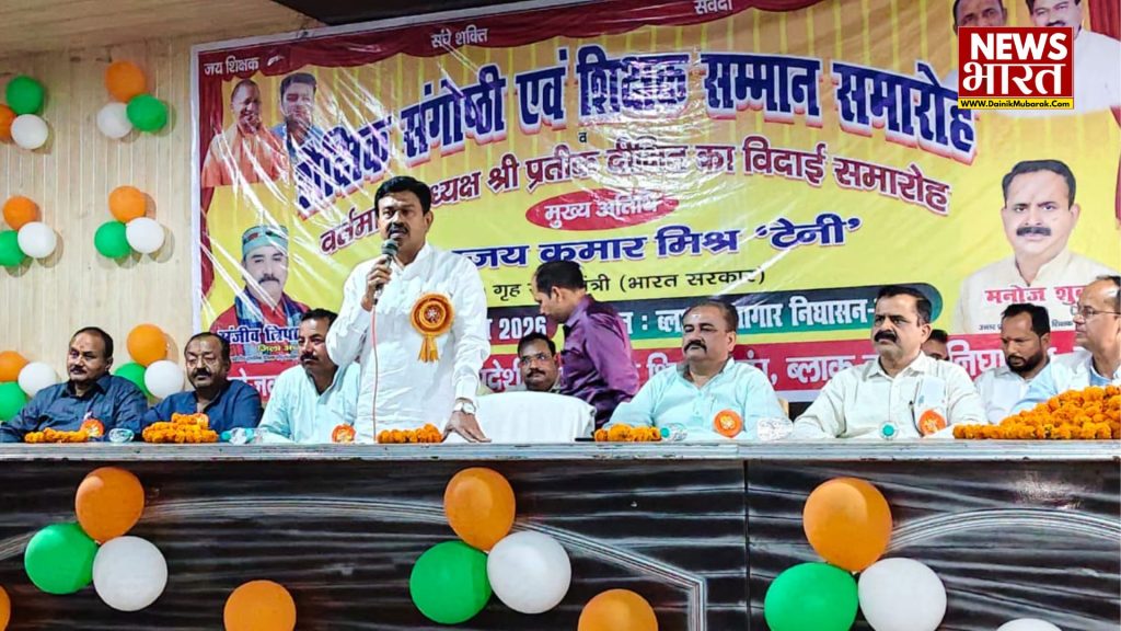 निघासन लखीमपुर खीरी। उत्तर प्रदेशीय प्राथमिक शिक्षक संघ की निघासन ब्लॉक इकाई द्वारा शनिवार को ब्लॉक सभागार में शैक्षिक संगोष्ठी एवं सम्मान समारोह का आयोजन किया गया। कार्यक्रम में सेवानिवृत्त और स्थानांतरित शिक्षकों को सम्मानित कर उन्हें भावभीनी विदाई दी गई। मुख्य अतिथि पूर्व केंद्रीय गृह राज्यमंत्री अजय मिश्रा ‘टेनी’ रहे।
